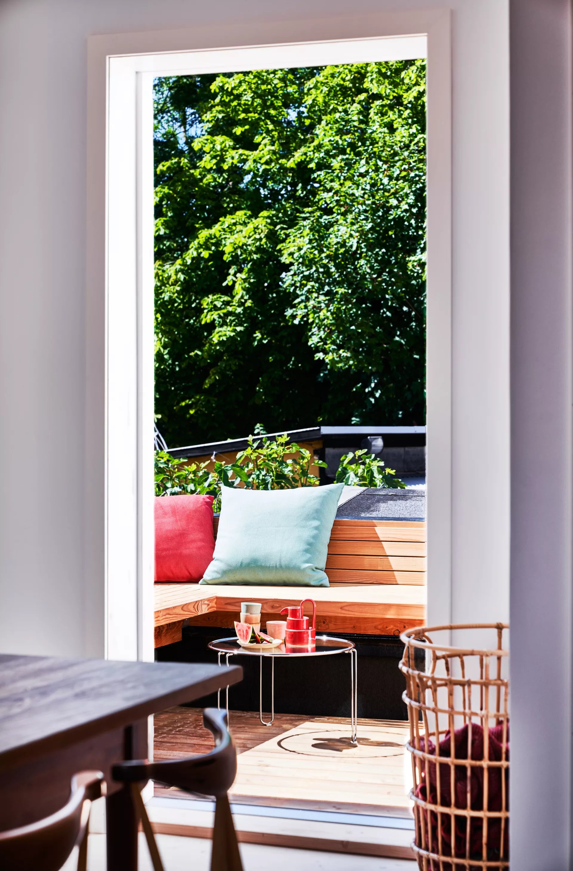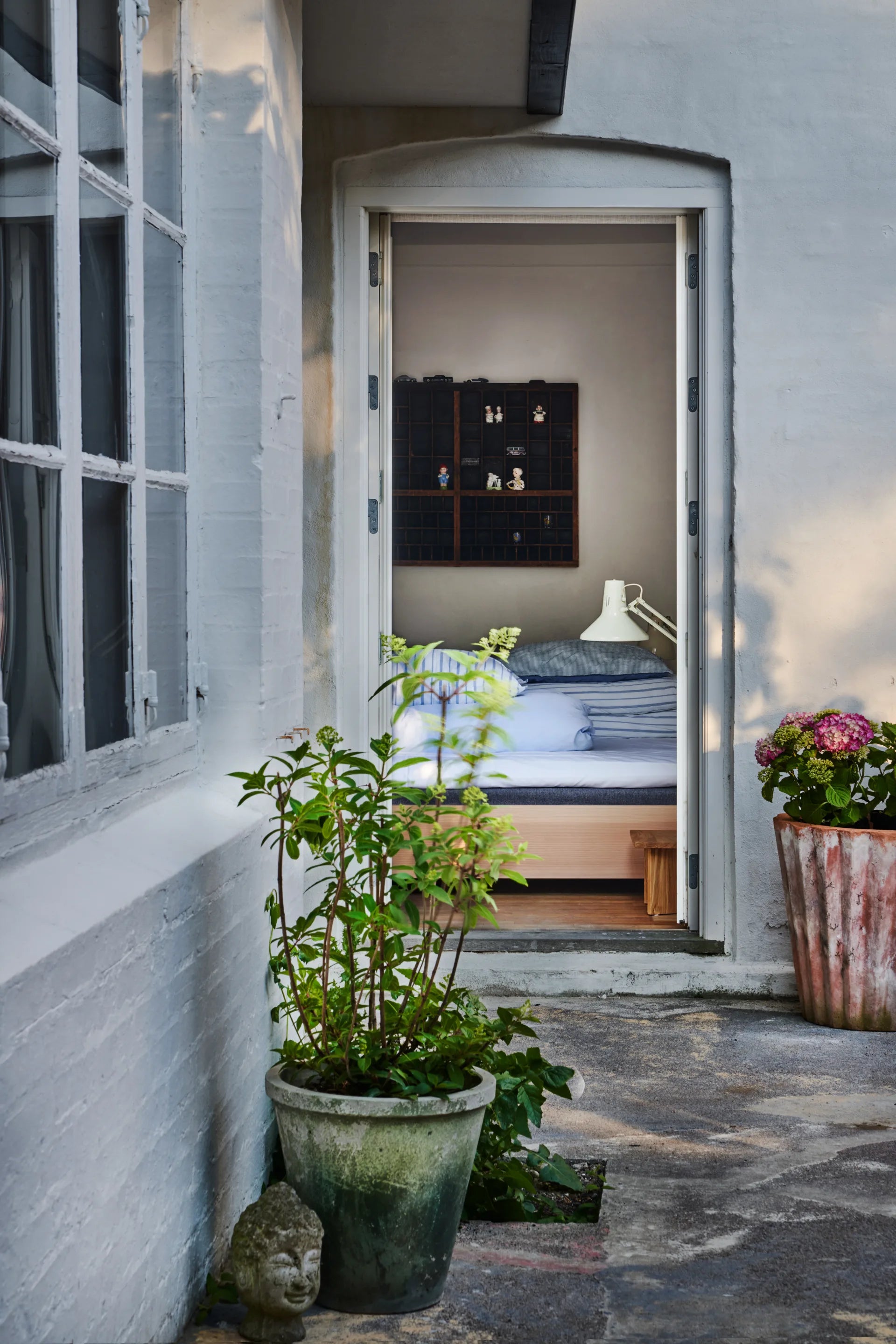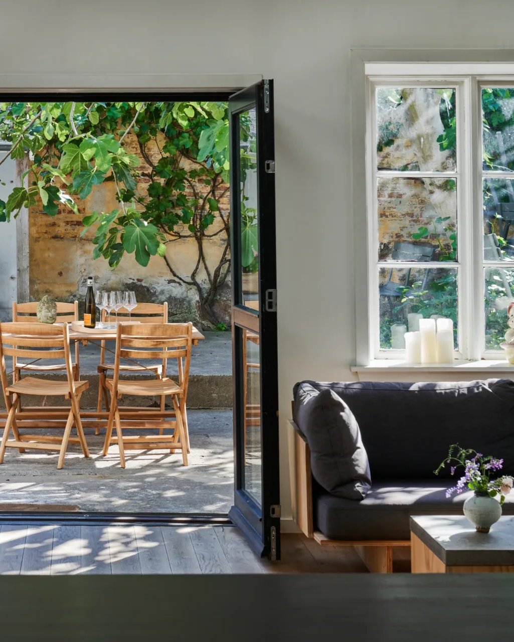 The enclosed courtyard is shared by all apartments – a peaceful oasis where the large fig tree casts its broad shadows. It is a place for a quiet moment in a sun lounger or for dinner under the open sky. The courtyard’s various seating areas allow you to be on your own or gather with others, and with both an Ofyr and a Yakitori grill, there is good opportunities to prepare a meal using local ingredients from the island.